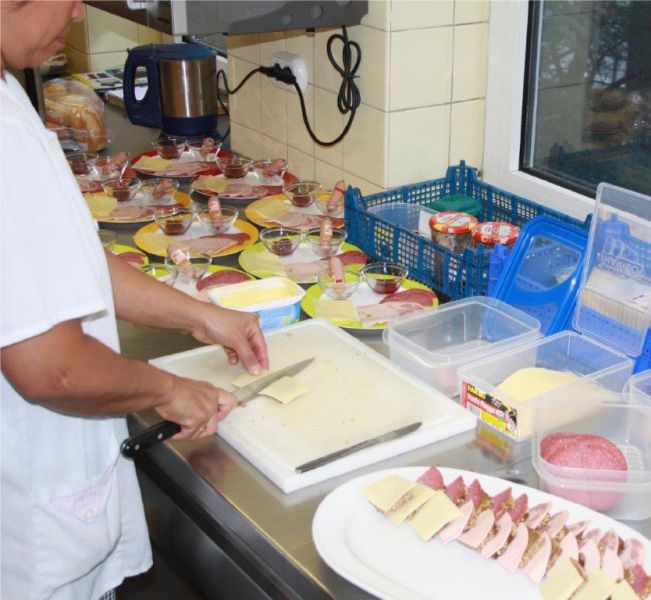 Über 50 Jahre wird jetzt schon im Mutterhaus im Tilemann-Hort für die Kinder gekocht. Seit Sommer 2013 mit Einführung der GBS (Ganztägige Bildung und Betreuung) haben wir uns erneut vergrößert und sind jetzt sogar Caterer. Täglich werden über 300 Essen gekocht. Die Schulmensa, oder besser bekannt als das Kinderrestaurant, wird mit bis zu 220 Essen pro Tag beliefert und von uns betrieben. Im "Zweischicht"-Betrieb können so fast alle Kinder der Schule das Essen zu sich nehmen.
